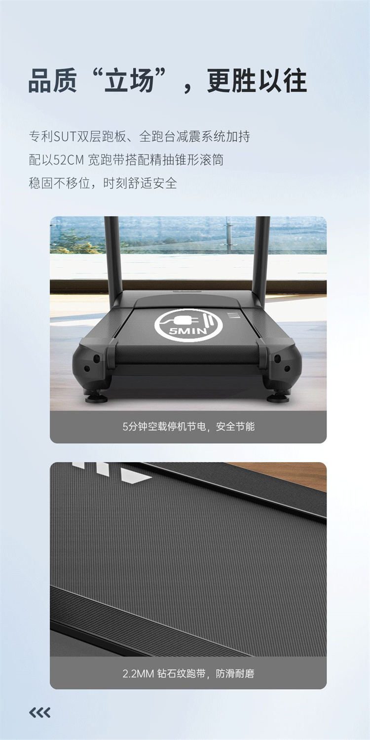 舒华I5智能家用跑步机是由舒华体育联合中国体育科学学会、上海体育大学运动科学学院教授陆大江等权威机构、专家共同研发设计。独特之处在于它结合国际科学跑步研究理论,能够针对不同用户进行运动能力测试,并根据测试结果生成因人而异的有氧运动处方。这意味着每个用户都能得到一个适合自己的运动方案,从而更好地达到运动效果。这一创新技术可以确保用户在运动过程中能够保持在最佳的区间状态,从而提高运动安全性和有效性。